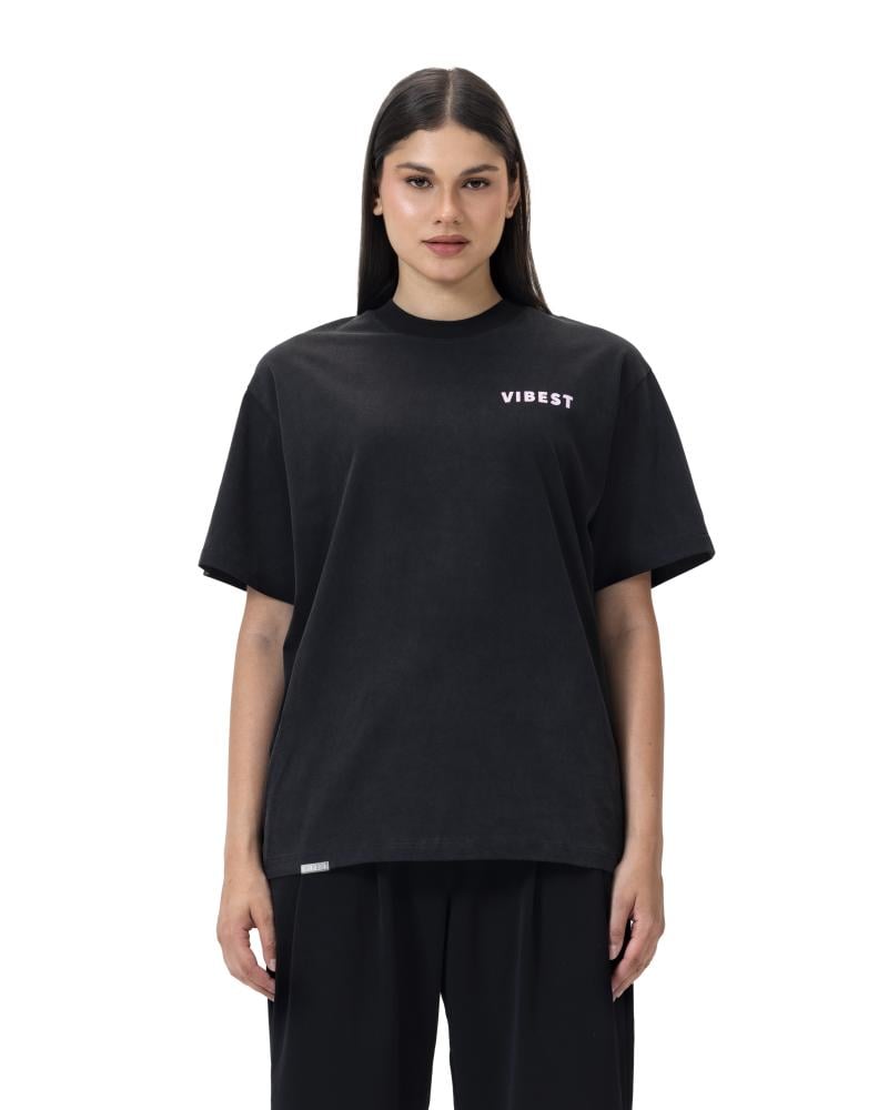 Black Normal sleeves oversized t-shirt with Logo printed design. Crew neck colar.