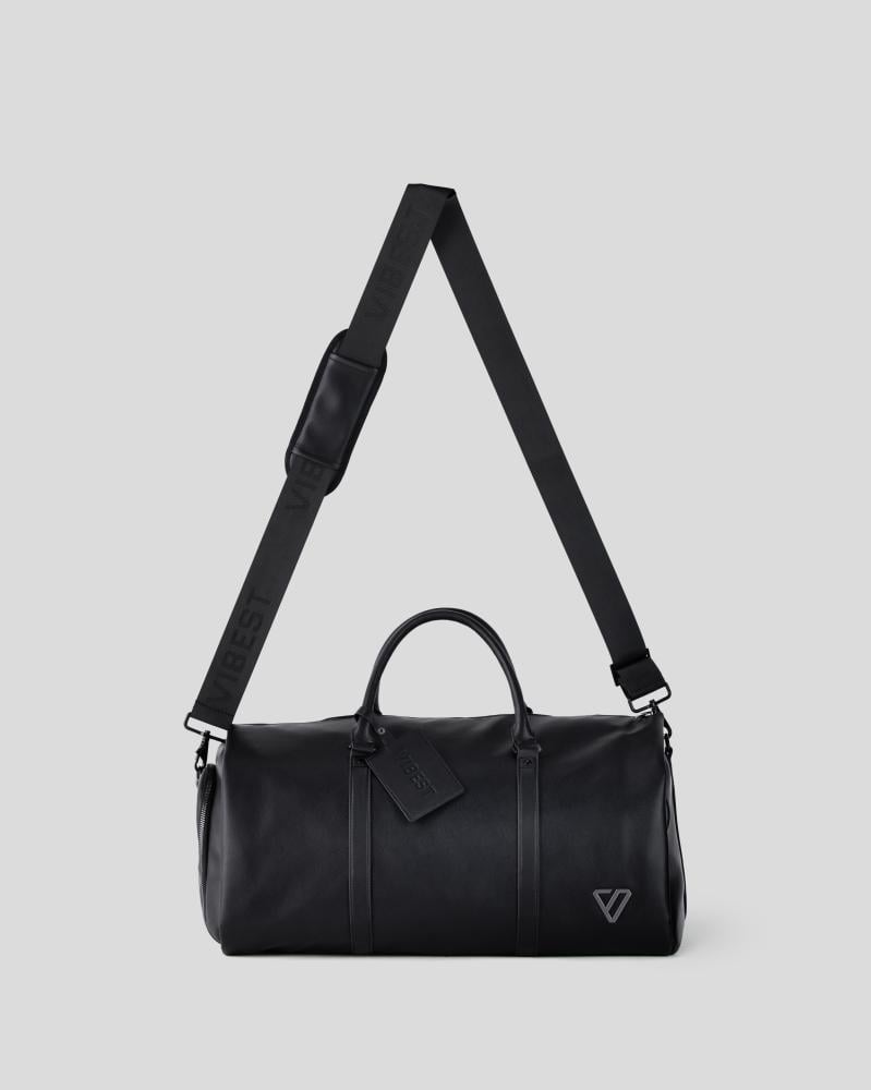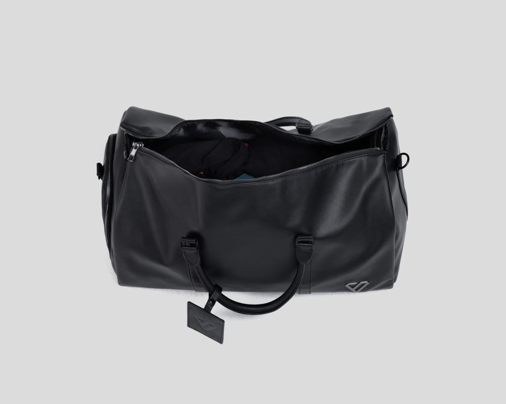 A foldable travel bag in smooth black faux leather by VIBEST. Designed with a full-zip construction that opens flat, allowing garments to be laid or hung inside for efficient packing and a tidy finish.